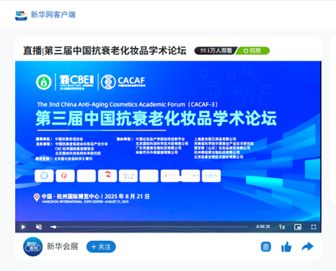 时间 2025年8月 21 日 地点 杭州国际美容博览会 《中国化妆品科学》推荐两位优秀代表在第三届中国抗衰老化妆品学术论坛报告 2025年8月 21 日,第三届中国抗衰老化妆品学术论坛在2025CBE 杭州国际美容博览会上隆重举办,本次论坛以 “植萃智造承东方美丽智慧・生态协同谱抗衰科技新篇”为主题,汇聚了众多行业专家、学者以及企业精英,共同探讨抗衰老化妆品领域的前沿科技与产业升级路径。凭借前沿的学术分享与深度产业对话,成为美妆行业关注的焦点。而在这场行业盛会中,中国化妆品科学杂志社作为学术支持单位,以专业引领姿态推动优质科研成果落地,成为论坛成功举办的关键力量。 本次论坛由新华网会展频道进行战略支持,全程直播,累计观看量超过 55 万次,充分显示了社会各界对化妆品科学尤其是抗衰老领域的高度关注。高人气的背后,反映出随着人们生活水平的提高,对美的追求更加理性,渴望通过科学的手段实现肌肤的抗衰保养。 此次论坛的成功举办,不仅为化妆品行业搭建了一个高水平的学术交流平台,促进了产学研深度融合,也让更多人了解到中国化妆品科学的最新进展。未来,中国化妆品科学杂志社将继续深耕化妆品科学领域,收录优化学术论文、拓展学术合作版图、开展科普公益活动等,为中国抗衰老化妆品产业高质量发展注入更多学术动能,助力中国美妆品牌在全球市场树立科学、专业的品牌形象。
