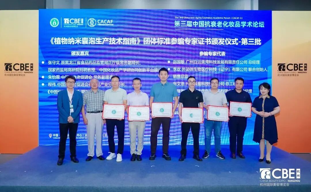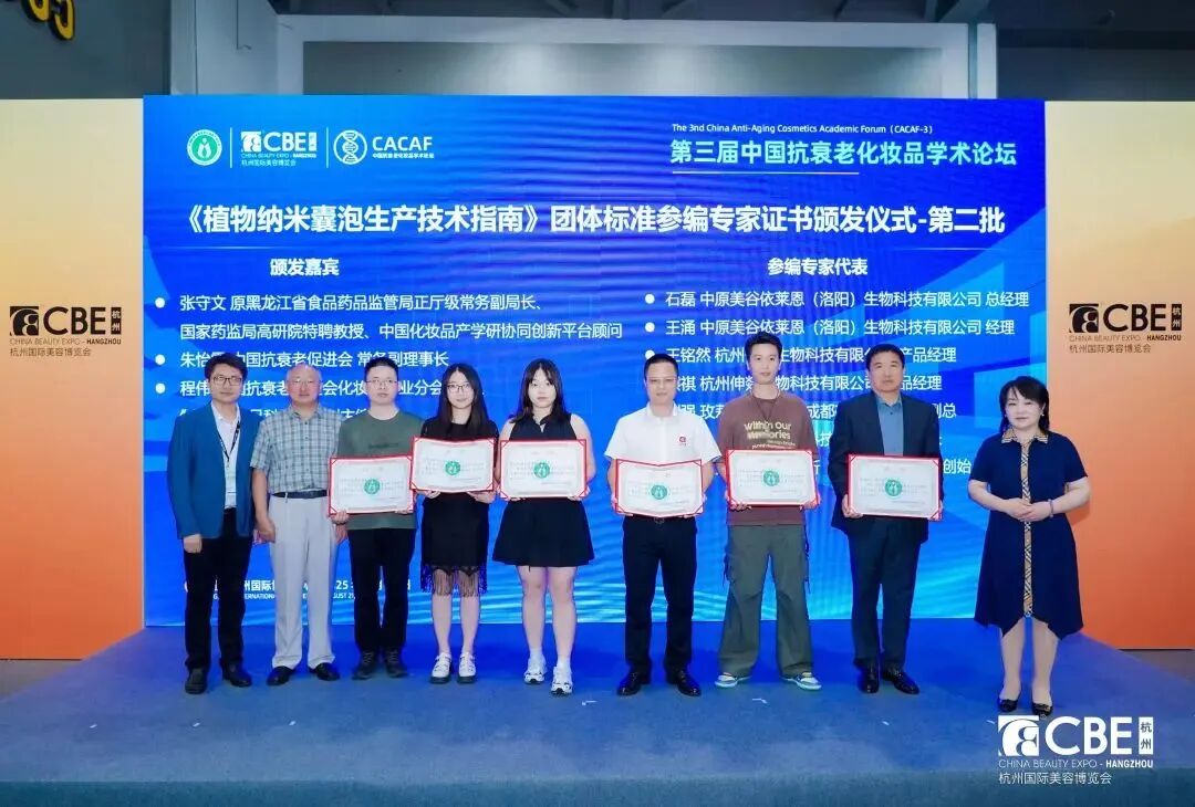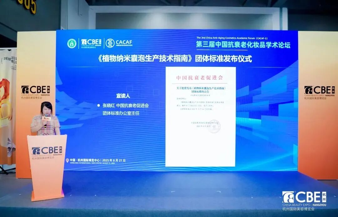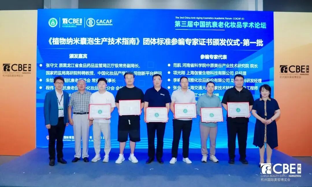 2025年8月21日,第三届中国抗衰老化妆品学术论坛(CACAF-3)期间,国内首部针对植物纳米囊泡生产技术的团体标准《植物纳米囊泡生产技术指南》(标准编号:T/ZGKSL 023—2025)正式发布。 发布仪式高光时刻:多领域专家共见证行业新标诞生 中国抗衰老促进会团体标准办公室主任张晓红宣读了关于批准发布该团体标准的公告。河南省科学院(洛阳)科创园 —— 中原美谷产业技术研究院院长范航博士对《植物纳米囊泡生产技术指南》进行了深入解读。他详细阐述了标准制定的背景意义、技术要点和实施要求,从原料选择、生产工艺、质量控制等各个环节提供了详细的技术规范。范博士指出:“该指南填补了植物纳米囊泡生产领域的技术标准空白,为相关企业的规范化生产提供了科学依据和技术指导,将有力推动植物纳米囊泡技术的产业化应用和高质量发展。” 启动仪式上,八位来自不同领域代表共同登台,为这一新标 “揭幕”,他们分别是: 朱怡霖 中国抗衰老促进会 常务副理事长 张晓红 中国抗衰老促进会团体标准办公室主任 程 伟 中国抗衰老促进会化妆品产业分会会长 杨高云 首都医科大学附属北京友谊医院主任医师 张延萍 河南科技大学副院长 范 航 河南省科学院中原美谷产业技术研究院 院长 项光刚 上海伽誉生物科技有限公司 总经理 李 响 珀莱雅化妆品股份有限公司 功效原料研发经理 产学研协同发力:40 家单位 + 46 位起草人共筑标准基石 一项高标准的诞生,离不开跨领域、多主体的协同参与。《植物纳米囊泡生产技术指南》由中国抗衰老促进会归口管理,汇聚了涵盖 “科研院校 + 检测机构 + 行业企业 + 医疗机构” 的 40 家核心参与单位,形成了 “产、学、研、检、用” 一体化的标准制定团队。 起草单位有中原美谷(洛阳)科技产业有限公司、米量科技(洛阳)有限公司等行业领军企业,以及烟台市食品药品检验检测中心、上海交大技术转移中心有限公司、华东理工大学、上海纳米技术及应用国家工程研究中心有限公司、广东医科大学、珀莱雅化妆品股份有限公司、上海家化联合股份有限公司、上海百雀羚化妆品有限公司、哈尔滨敷尔佳科技股份有限公司、广东远思南药生物科技有限公司、河南尚研科技研究有限公司、广州蛋壳网络科技有限公司、深圳市羽素生物科技有限公司、玫莉蔻生物科技成都有限公司、广州佳然至美生物科技有限公司、捷青丽生物科技(上海)有限公司、广州鹿人文化传媒有限公司、广州予田科技有限公司、广东梵蜜琳生物科技有限公司、洛阳宝芳生物科技有限公司、广东科盈科技有限公司、广东诺米佳生物医药有限公司、中原美谷依莱恩(洛阳)生物科技有限公司、广东万禧生物科技有限公司、颐养同康(广州)药业有限公司、广州栋方生物科技股份有限公司、广东芭薇生物科技股份有限公司、外泌体生物医疗科技(辽宁)有限公司、王药师美妆研究所(中国)有限公司、广州白云美湾科技发展有限责任公司、上海伽誉生物科技有限公司、北京热景生物技术股份有限公司、杭州伸懿生物科技有限公司、杭州伸燚生物科技有限公司、河南科技大学、北京友谊医院、杭州原极品牌管理有限公司、福建艾泌体科技有限公司等40家单位深度参与。 同时,标准的起草工作由 46 位行业专家共同完成,包括范航、黄虎、项光刚、郝盛源、张泉泓、张阳、彭家伟、彭新生、李响、贾海东、蒋丽刚、张晔翔、凌远强、赵鹏翔、李维兴、陈剑晖、蔡丽、魏霜、周佳佳、熊婷婷、石新宇、蔡彬弟、曹进强、张子悟、马锋潮、石磊、张艺豪、孙亚涛、曾飒、李适炜、程冠中、王玮、赵国敏、陈建国、范毅、杨昌澎、徐超、苏丹辉、刘强、金星光、梁菊、张延萍、杨高云、王伟、吴峰、王永生。经过多轮研讨、数据验证与意见征集,确保标准的科学性与实用性。 在发布仪式后,原黑龙江省食品药品监管局正厅级常务副局长、国家药监局高研院特聘教授、中国化妆品产学研协同创新平台顾问张守文,中国抗衰老促进会常务副理事长朱怡霖,化妆品产业分会会长、《中国化妆品科学》期刊主编程伟共同为参编单位代表颁发证书。这一环节不仅是对所有参与者专业贡献的认可,更彰显了产学研协同推动行业标准化建设的决心。