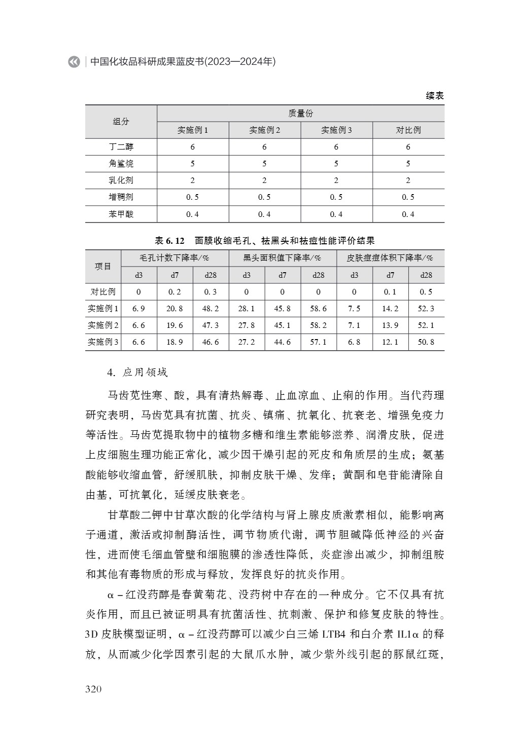 《中国化妆品科研成果蓝皮书(2023—2024 年)》由中国抗衰老促进会化妆品产业分会、北京国妆科创自然科学研究院以及中国化妆品产学研协同创新平台共同组织。全书580页,57.8万字ISBN978-7-5136-8011-0,中国经济出版出版。 蓝皮书是由国内100多位来自高校院所与企业的专家精心打造的行业权威著作,汇集了超百位科研工作者的卓越智慧与辛勤付出。作为美妆科研领域的里程碑式著作,蓝皮书自问世以来,便以“全面性、深入性、专业性”的三大特质,赢得产学研各界高度赞誉!填补国内该领域学术梳理空白,为行业制定标准、技术革新、产业升级提供权威战略指南。 无锡知妍生物科技有限公司成立于2021年7月5日,位于无锡市锡山区,是知原药业旗下的全资子公司。作为一家以科学研究和技术服务业为主的企业,公司主营功效性护肤品,旗下品牌“质润”专注于科学护肤领域,并依托知原药业在皮肤药领域的技术积累,建立了ZR全球皮肤学实验室,推动研发本土化与国际化。 知妍生物科技拥有化妆品生产许可资质,获评高新技术企业及科技型中小企业等称号,知识产权成果丰富,涵盖多项商标、专利及著作权。 一种可祛痘的壬二酸慕斯面霜及其制备方法