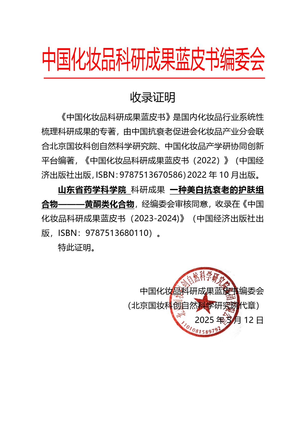 山东省药学科学院:一种美白抗衰老的护肤组合物———黄酮类化合物 |《中国化妆品科研成果蓝皮书(2023-2024)》成果展示 日期: 2026-01-16 来源: 浏览: 37