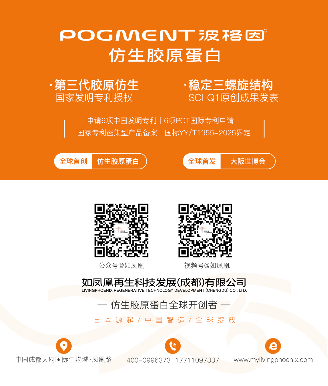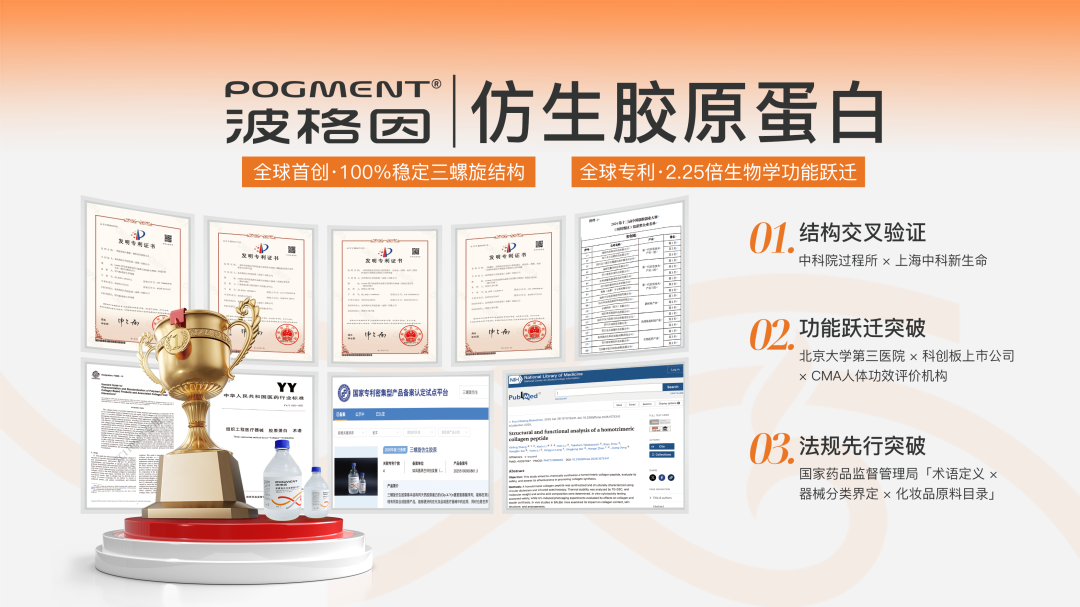 *新闻来源:红星新闻 记者:王俊峰 近日,如凤凰再生科技发展(成都)有限公司(以下简称“如凤凰科技”)自主研发的POGMENT波格因®三螺旋仿生胶原蛋白,在全球首次通过冷冻电镜(Cryo-EM)技术,于近生理状态与超低温条件下,实现“胶原纤维束”高级结构的高分辨分子级可视化成像,填补了国际上对胶原蛋白纤维组装机制的结构认知空白。 ▲POGMENT波格因®三螺旋仿生胶原蛋白 据了解,POGMENT波格因®是全球首个突破热稳定性难题的三螺旋仿生胶原蛋白,解决了传统动物提取胶原蛋白和重组胶原蛋白在性能上的瓶颈难题。如凤凰再生创始人覃兴炯表示,该产品已经拿下多项国际国内发明专利,获得了国家专利密集型产品备案,并已实现工厂级规模化量产,为高端医美与再生医学提供国产替代方案。 基于成都的四项发明专利 为业界提供结构科学依据 胶原蛋白是人体含量最多、分布最广的功能性蛋白,被称为“生命的脚手架”,其天然的三螺旋结构是支撑皮肤、骨骼、血管的关键。目前市场上的胶原蛋白主要有三种类型:动物提取胶原蛋白、重组胶原蛋白和仿生胶原蛋白,POGMENT波格因®属于仿生胶原蛋白。 不过,覃兴炯告诉记者,虽然科学界早已知晓胶原蛋白的重要性,但是对其如何由三螺旋单体自组装成具有功能的“胶原纤维束”,始终缺乏直接的高分辨影像证据,这也制约了产业化发展。 如今,这一空白被中国团队填补。据介绍,在天府锦城实验室(前沿医学中心)冷冻电镜平台的协同攻关下,研究团队利用300kV冷冻透射电镜Titan Krios G4,在液氮冷却(–196°C)的超低温环境中,以165000倍放大率,成功捕获POGMENT®仿生胶原多批次产品自组装形成的“胶原纤维束”超微结构。 ▲“胶原纤维束”超微结构 同时,通过120kV常温透射电镜(Talos L120C TEM),研究团队在45000×与73000×放大倍数下,通过负染法对多批次样品进行观测,揭示了胶原纤维束的结构特征。这是国际上首次对胶原蛋白实现纤维束级别的高分辨成像,不仅证实其具备类天然胶原的自组装能力,更揭示了其作为“活性支架”的结构基础,填补了国际上对胶原蛋白纤维组装机制的结构认知空白。 据介绍,本次突破是基于成都市专利保护中心预审通过的四项发明专利,分别是物质发明专利:ZL202510440051.4、ZL202510440054.8、ZL202410309842.9,以及用途发明专利:ZL202510391971.1。 “此项成果不仅是材料科学层面的技术跃升,更体现了中国在生物医用新材料领域的原创能力与战略纵深。”覃兴炯表示,这一突破为后续胶原蛋白的功能化设计、产业化转化和临床应用奠定了坚实基础,也为组织再生、医美抗衰及慢性创面修复等提供了坚实的结构科学依据。 产品已实现工厂级规模化量产 实现多个应用场景覆盖 POGMENT波格因®的技术演进,是一部中国高端生物材料自主创新的缩影。覃兴炯介绍,其技术源于日本京都大学教授团队的初代人工合成胶原技术(1.0),后经日本科学家Takafumi Takebayashi博士携核心工艺(1.1)落地中国,经由中国与日本科学团队协同攻关,在成都天府国际生物城顺利完成本土化升级(1.2),实现了关键技术的中国转化与迭代。 ▲如凤凰再生公司 最终,由东京大学应用化学博士、如凤凰科技研发总监周勃宇领衔的多学科团队,联合北大、中科院、上交大、兰大等博士团队科研力量,进一步突破三螺旋稳定性与自组装调控的工业化难题,打造出拥有完全自主知识产权的第二代技术体系(2.0),实现了技术主权“自主可控”。 目前,该技术已经申请6项中国发明专利、6项PCT国际专利,已获国家知识产权局3项发明专利(物质专利)和1项发明专利(用途专利)授权,并完成国家专利密集型产品备案,标志着其技术体系进入高标准、高壁垒阶段。 据了解,该项目已实现工厂级规模化量产,单位成本与重组胶原蛋白相当;随着智能化工厂投产及生产规模持续扩大,预计未来溶液年产能将达30吨,成本有望降至当前重组胶原蛋白的50%,为高端医美与再生医学提供兼具性能与性价比的国产替代方案。 据头豹研究院预测,中国仿生胶原蛋白市场将从2025年的不足百万元,激增至2030年的67.78亿元,年复合增长率超150%。POGMENT波格因®仿生胶原蛋白凭借其自身结构优势,已正式纳入国家药监局发布的医药行业标准《组织工程医疗器械胶原蛋白术语》(YY/T1955-2025),并在国家药品监督管理局医疗器械技术审评中心完成医疗器械主文档登记。 “同时,如凤凰科技已完成注射用仿生胶原蛋白冻干纤维的医疗器械分类界定申请,类别为第III类医疗器械。”覃兴炯介绍,该材料也被列入化妆品原料目录,实现多场景覆盖,具备跨领域应用潜力。