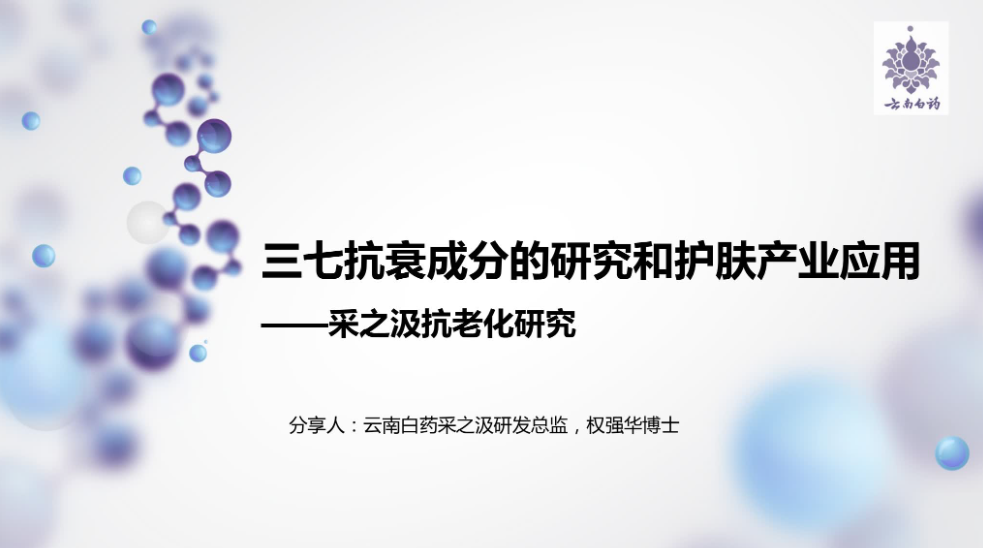 CACAF-3报告分享|云南白药采之汲研发总监权强华《三七抗衰成分的研究和护肤产业应用》 日期: 2025-09-12 来源: 浏览: 21