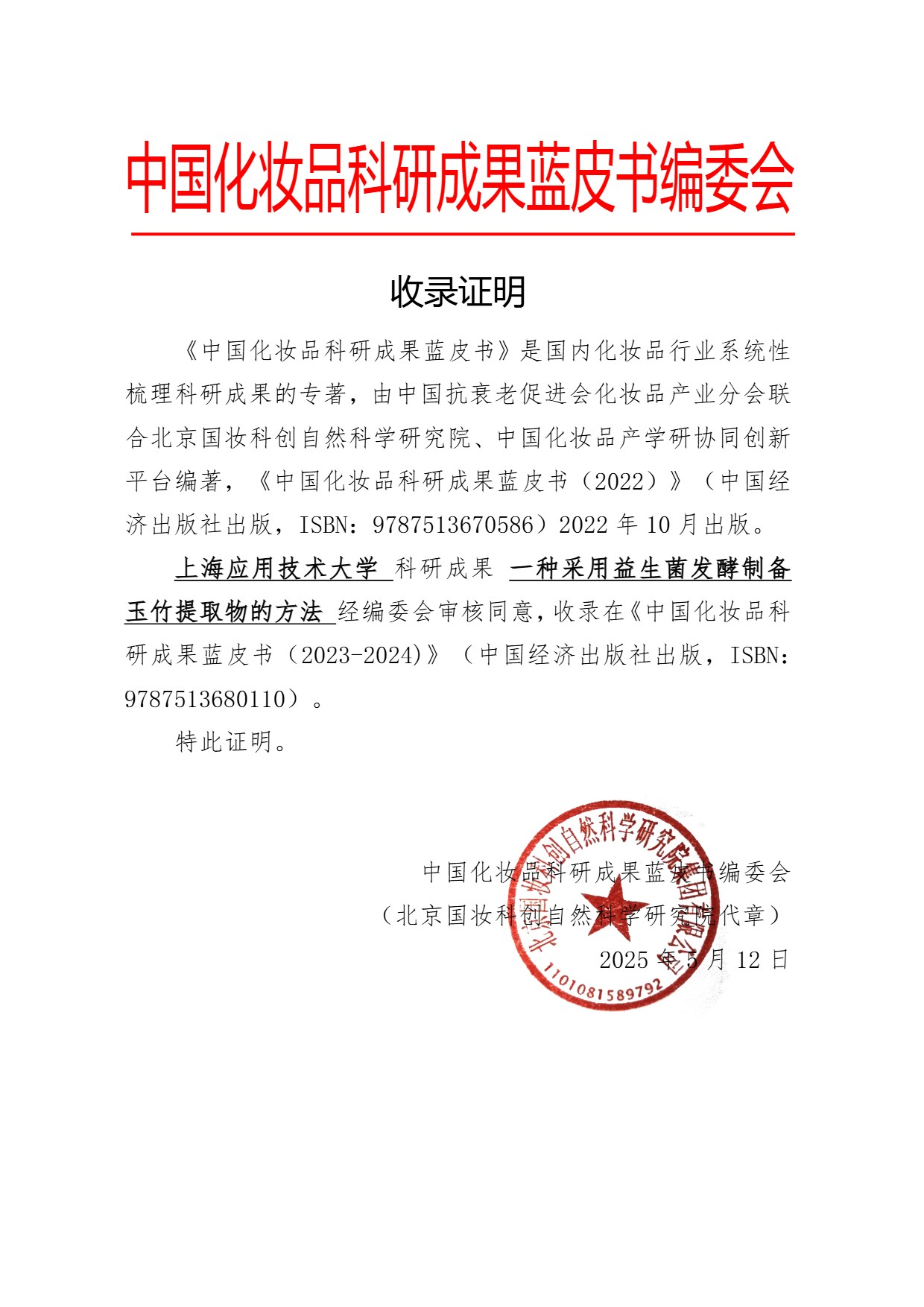 《中国化妆品科研成果蓝皮书(2023—2024 年)》由中国抗衰老促进会化妆品产业分会、北京国妆科创自然科学研究院以及中国化妆品产学研协同创新平台共同组织。全书580页,57.8万字ISBN978-7-5136-8011-0,中国经济出版出版。 蓝皮书是由国内100多位来自高校院所与企业的专家精心打造的行业权威著作,汇集了超百位科研工作者的卓越智慧与辛勤付出。作为美妆科研领域的里程碑式著作,蓝皮书自问世以来,便以“全面性、深入性、专业性”的三大特质,赢得产学研各界高度赞誉!填补国内该领域学术梳理空白,为行业制定标准、技术革新、产业升级提供权威战略指南。 合作院校: 上海应用技术大学 上海应用技术大学办学肇始于1954年,现为上海市重点建设的高水平地方大学,是一所具有学士、硕士和博士培养层次的、特色鲜明的应用创新型大学。学校入选上海市高水平地方大学重点建设单位、上海高等学校一流本科建设引领计划和一流研究生教育引领计划、上海市深化创新创业教育改革示范高校、上海高校课程思政整体改革领航高校、国家科技人才评价改革试点单位、国家知识产权试点高校、上海市专利工作示范单位、上海市依法治校示范校,入选中国科技成果转化百强高校。2018年以来,在上海高校分类评价中连续六年跻身应用技术型高校第一梯队 合作单位: 上海侬本雅生物科技有限公司 上海侬本雅生物科技有限公司位于上海市奉贤区望园路1888号1-201室,目前处于开业状态。公司经营范围主要包括技术服务与开发、货物与技术进出口、基础化学原料制造(不含危险品)、生物化工及工业酶研发、医疗器械与化妆品销售等。 一种采用益生菌发酵制备玉竹提取物的方法 张老师:13671170103 扫描下方二维码即刻订购蓝皮书