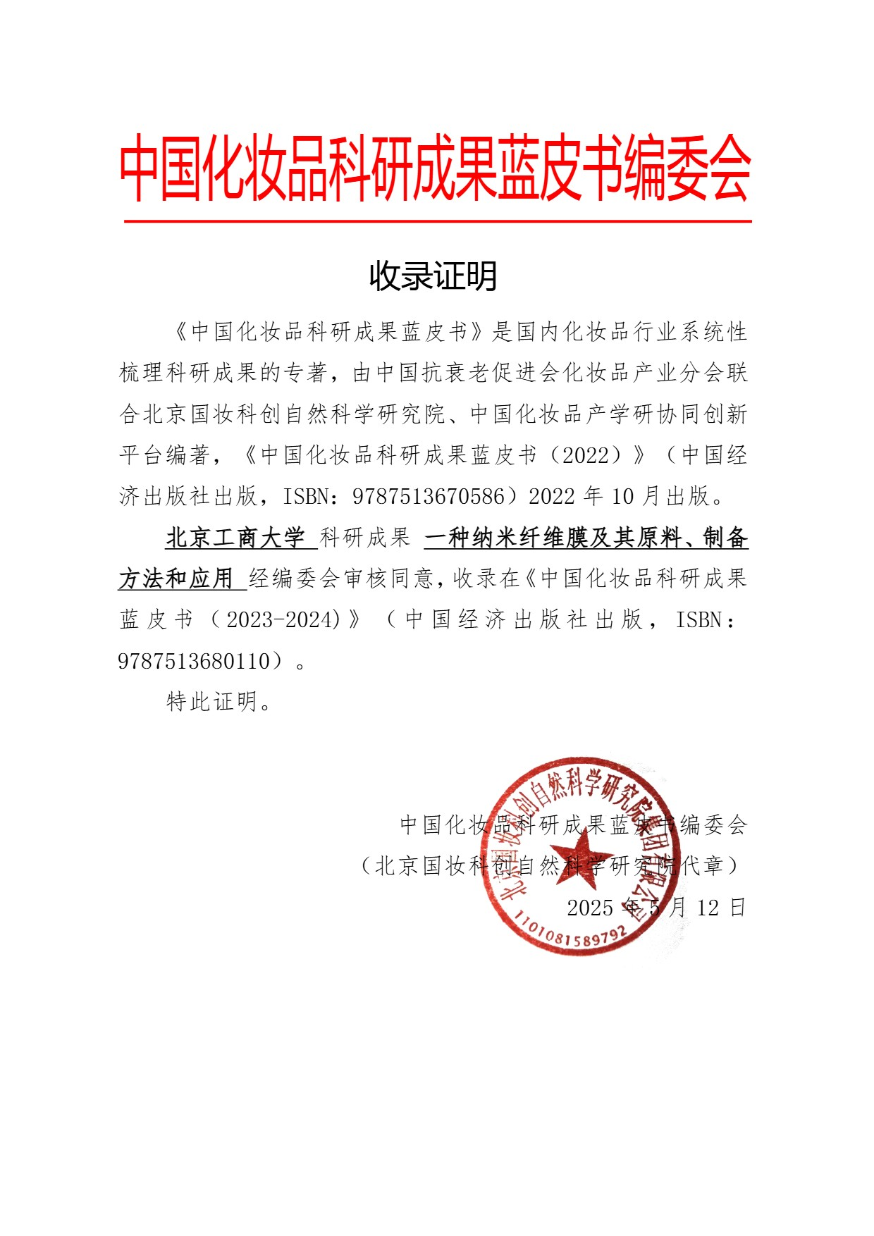 北京工商大学:一种纳米纤维膜及其原料、 制备方法和应用|《中国化妆品科研成果蓝皮书(2023-2024)》成果展示 日期: 2026-01-22 来源: 浏览: 24