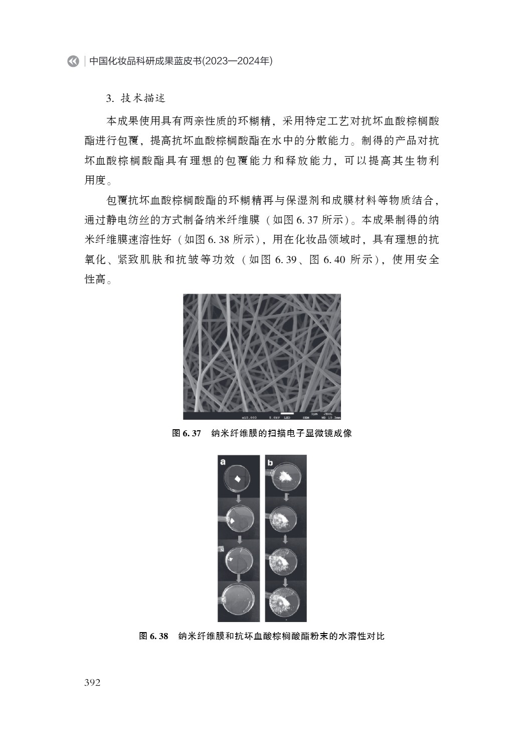 《中国化妆品科研成果蓝皮书(2023—2024 年)》由中国抗衰老促进会化妆品产业分会、北京国妆科创自然科学研究院以及中国化妆品产学研协同创新平台共同组织。全书580页,57.8万字ISBN978-7-5136-8011-0,中国经济出版出版。 蓝皮书是由国内100多位来自高校院所与企业的专家精心打造的行业权威著作,汇集了超百位科研工作者的卓越智慧与辛勤付出。作为美妆科研领域的里程碑式著作,蓝皮书自问世以来,便以“全面性、深入性、专业性”的三大特质,赢得产学研各界高度赞誉!填补国内该领域学术梳理空白,为行业制定标准、技术革新、产业升级提供权威战略指南。 合作院校: 北京工商大学 北京工商大学于1999年由北京轻工业学院、北京商学院与机械工业管理干部学院合并组建,现已发展成为一所以理、工、农、经、管、法、文、艺等多学科协调发展的多科性大学。学校坚持特色发展,持续推进“双一流”学科建设,拥有7个一级学科博士学位授权点、1个博士专业学位授权点和19个一级学科硕士学位授权点,设有多个国家级及省部级科研平台。现有在校生1.7万余人,占地83万平方米,分为阜成路校区和良乡校区。未来,学校将继续聚焦首都发展需求,以高质量党建为引领,深化改革创新,加快建设高水平研究型大学。 合作单位: 北京中德联合化妆品研究所有限公司 北京中德联合化妆品研究所有限公司成立于2004年,是由中检国控科技集团与施拉得博士国际有限公司合资组建的国有控股企业。公司为高新技术企业和瞪羚企业,主营化妆品质量检验、功效测试及技术咨询,此外,公司还参与了《化妆品修护功效测试方法》(T/CAFFCI 66—2023)团体标准的制定,合作方包括强生、资生堂等跨国企业。 一种纳米纤维膜及其原料、 制备方法和应用