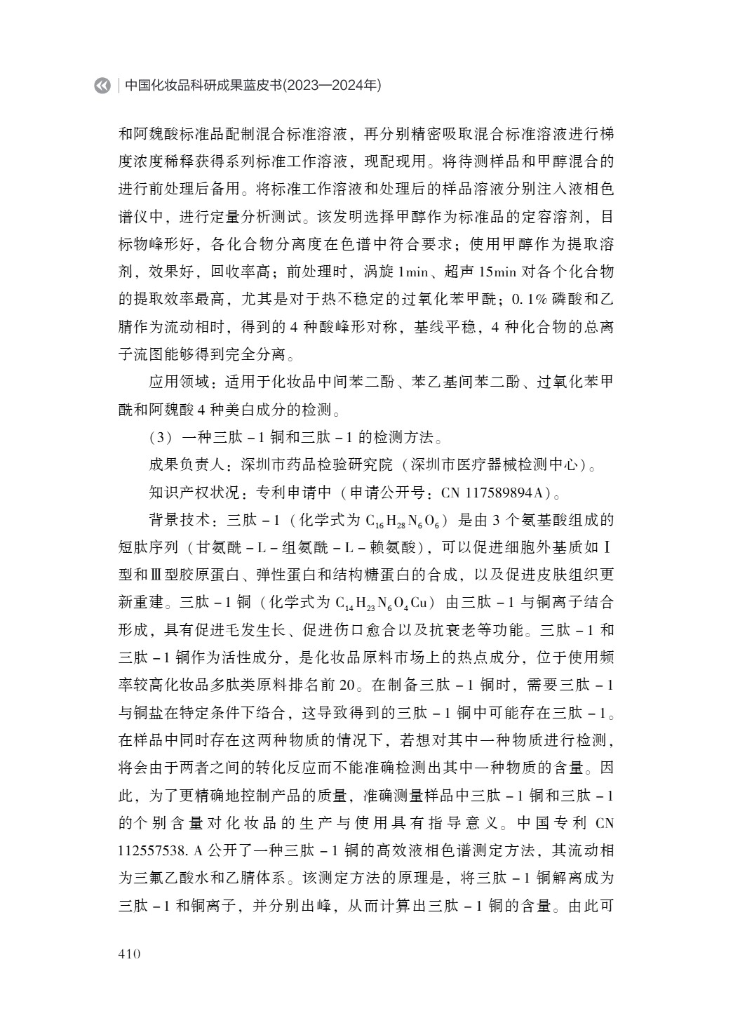 深圳市药品检验研究院:一种三肽 - 1 铜和三肽 - 1 的检测方法|《中国化妆品科研成果蓝皮书(2023-2024)》成果展示 日期: 2026-01-26 来源: 浏览: 26