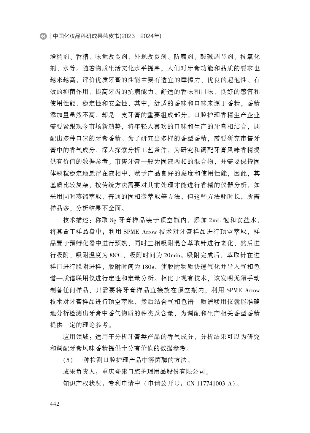 雅迪香料 (广州) 有限公司:一种牙膏中香精成分的分析方法|《中国化妆品科研成果蓝皮书(2023-2024)》成果展示 日期: 2026-02-02 来源: 浏览: 21