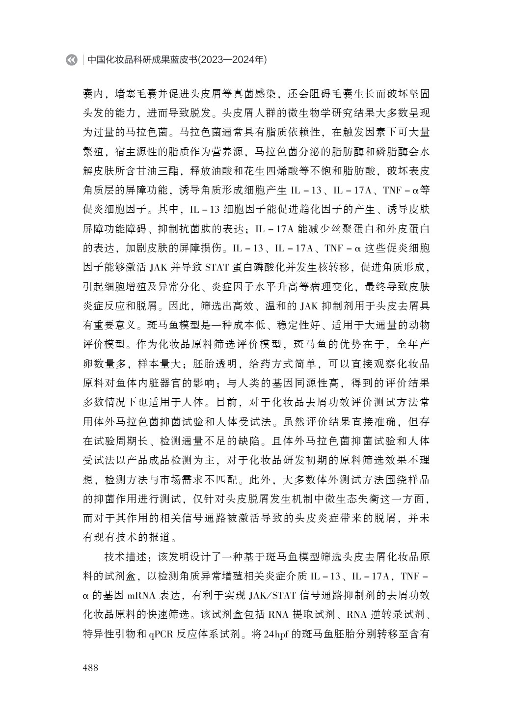 福建中妆技术研究有限公司:基于斑马鱼模型筛选头皮去屑化妆品原料的试剂盒及应用|《中国化妆品科研成果蓝皮书(2023-2024)》成果展示 日期: 2026-03-17 来源: 浏览: 5